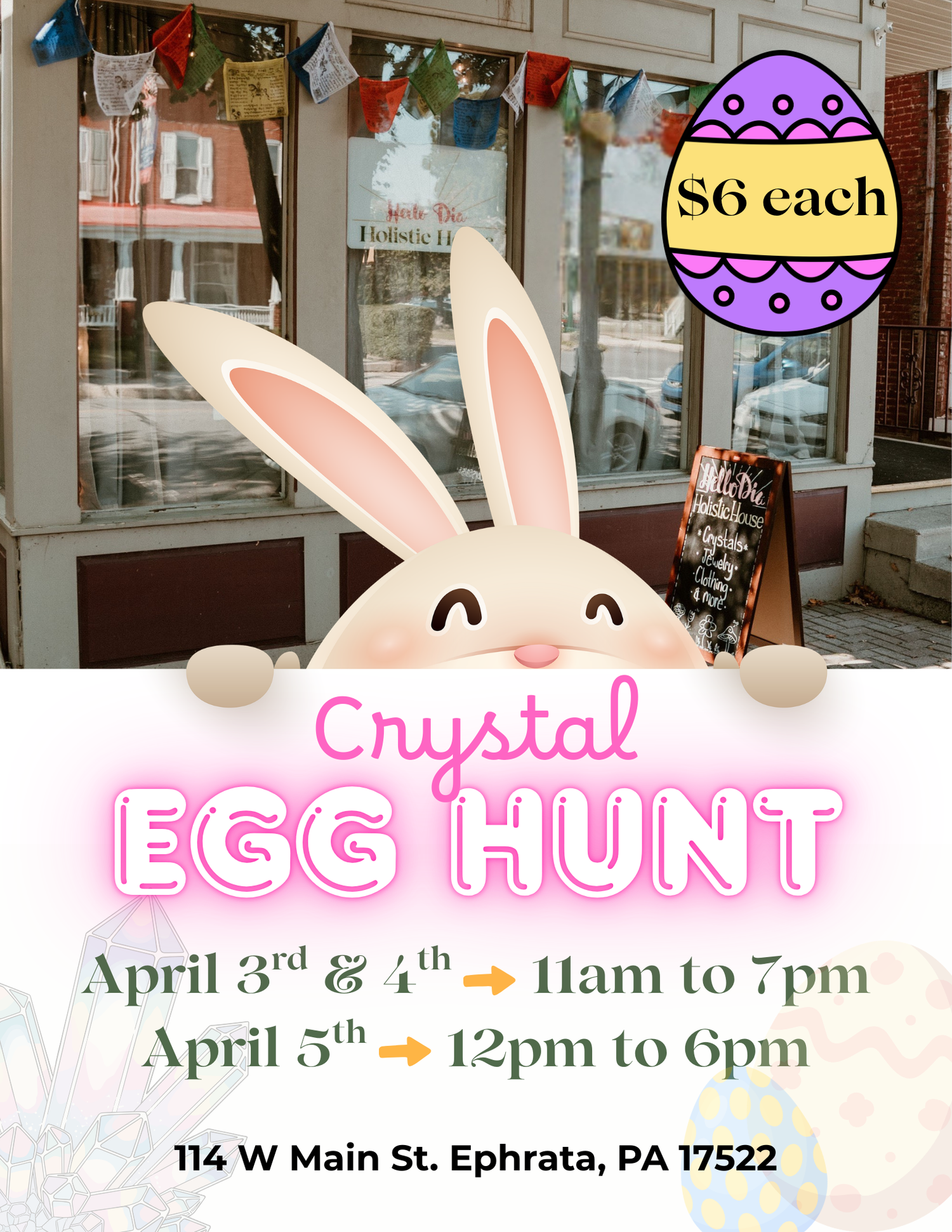 We are so excited to invite you to our 3rd annual Crystal Egg Hunt. This has quickly become one of our favorite shop traditions, and we cant wait to celebrate another year of magic and community with you!