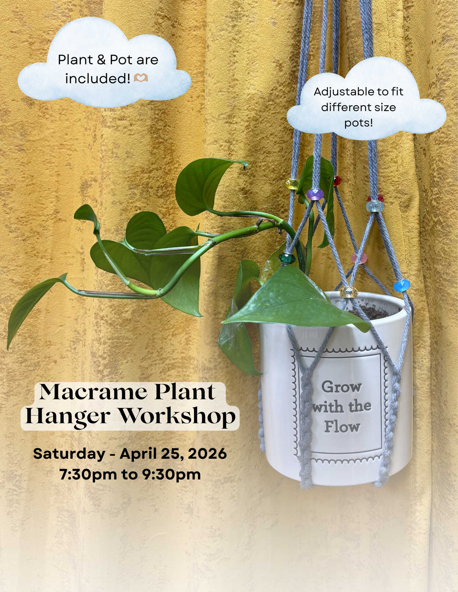 Come hang with us! In this two-hour workshop, you'll learn the art of knotting and create your very own adjustable macrame plant hanger. Our design features beads to adjust and fit various pot sizes!