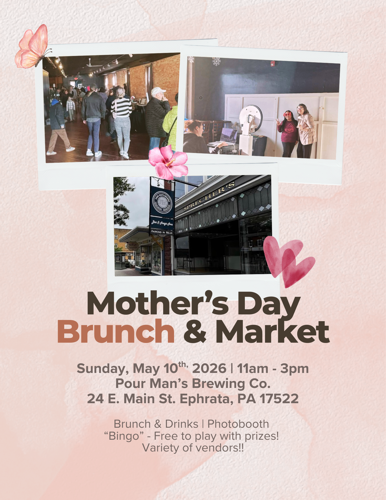 Looking for the perfect way to celebrate Mom? Join us as we host a Makers Market up stairs at Pour Man’s Brewing Co.! A Sunday filled with local shopping, delicious food, and plenty of fun! Whether you’re hunting for a unique gift from our curated vendors or just want to relax with a brew and brunch, there’s something for everyone.